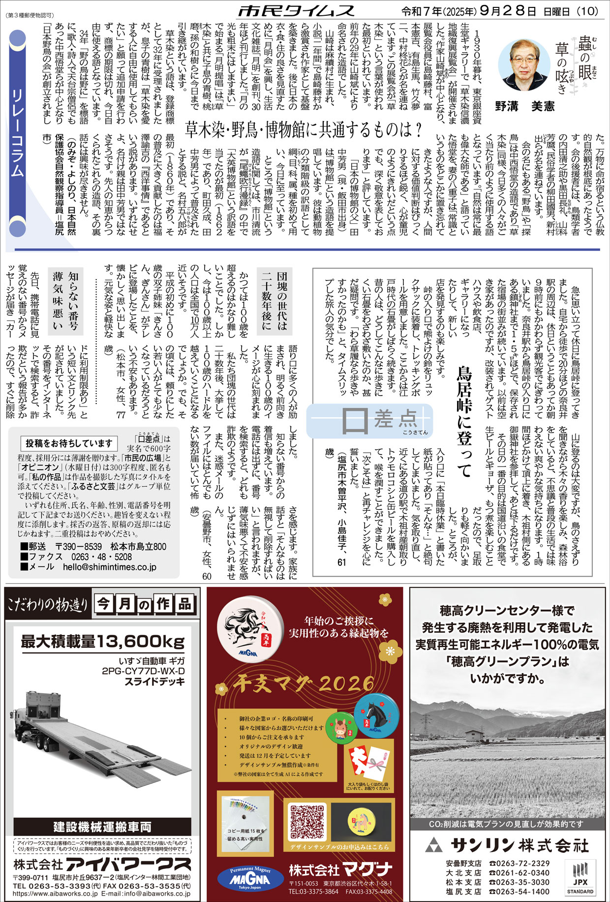 9月28日(日)発行の市民タイムスに弊社企業広告が掲載されました。