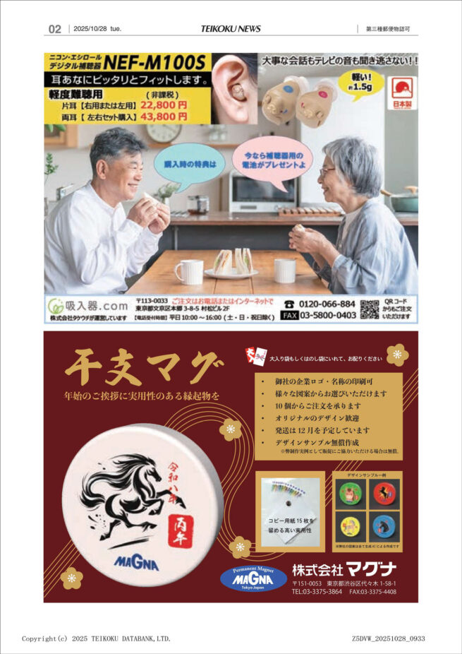10月28日(火)発行の日刊 帝国ニュース表紙裏面に、弊社企業広告が掲載されました。