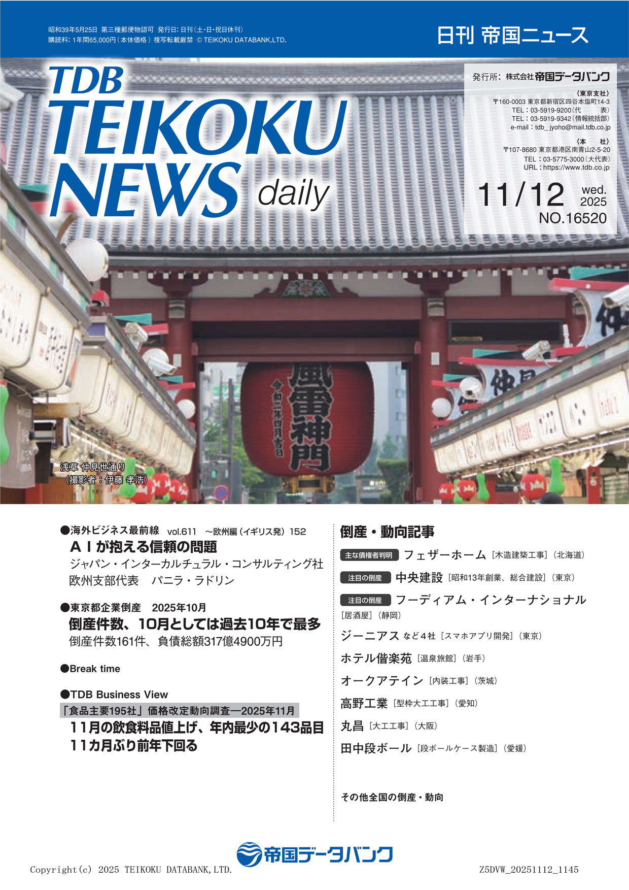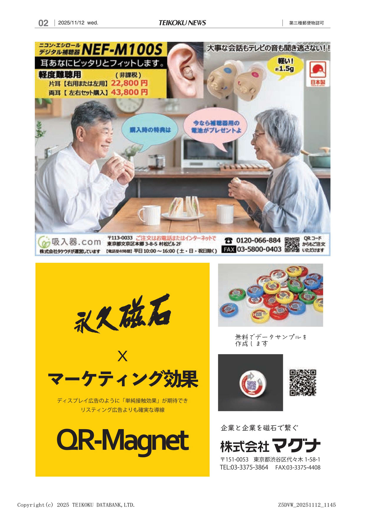 11月12日(水)発行の日刊 帝国ニュース表紙裏面に、弊社企業広告が掲載されました。