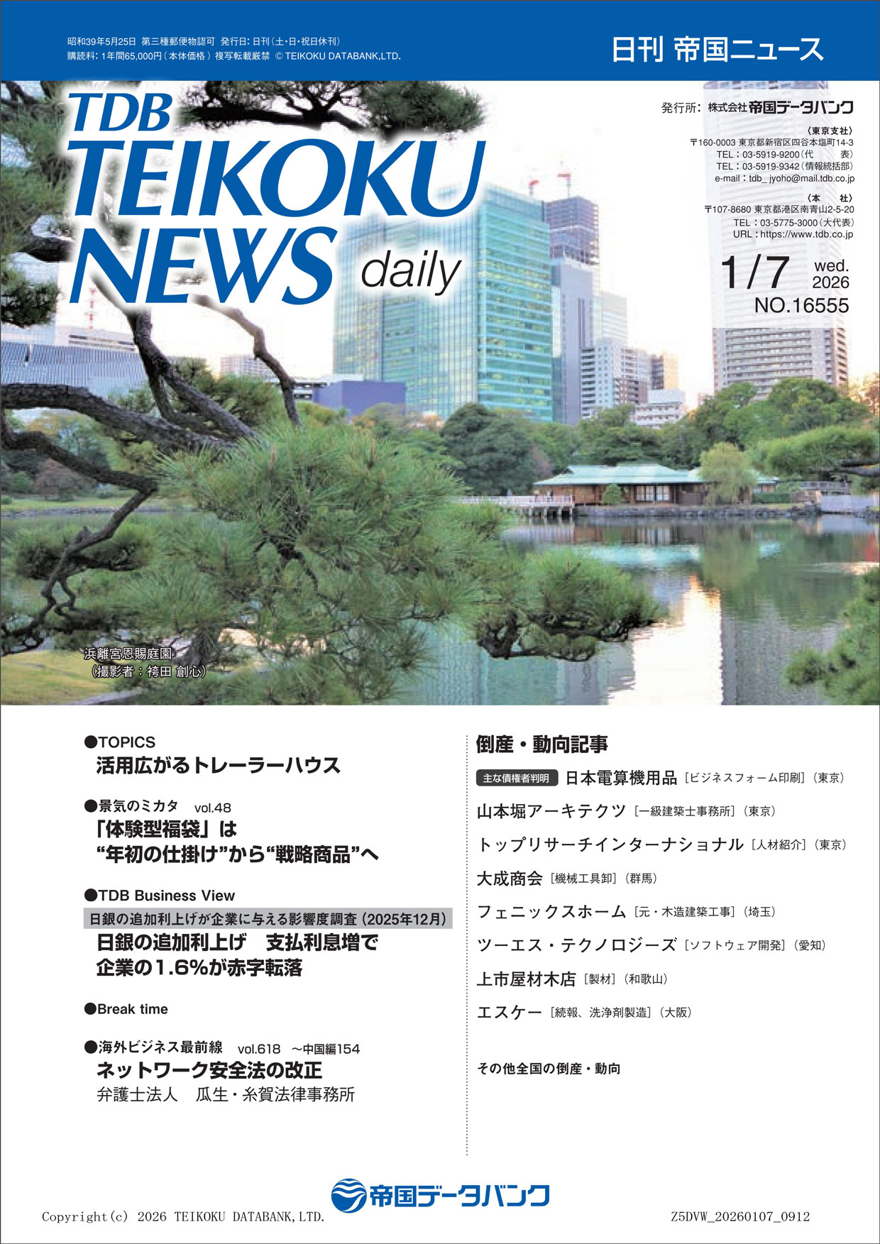 1月7日(水)発行の日刊 帝国ニュース表紙裏面に、弊社企業広告が掲載されました。