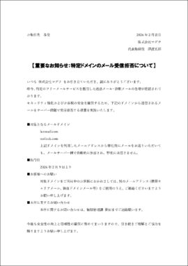 【重要】特定ドメインのメール受信拒否について