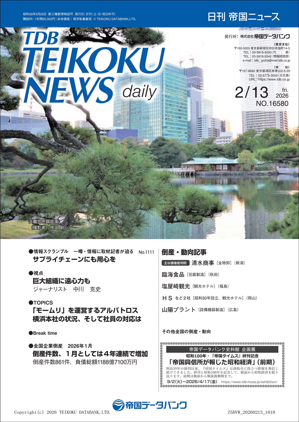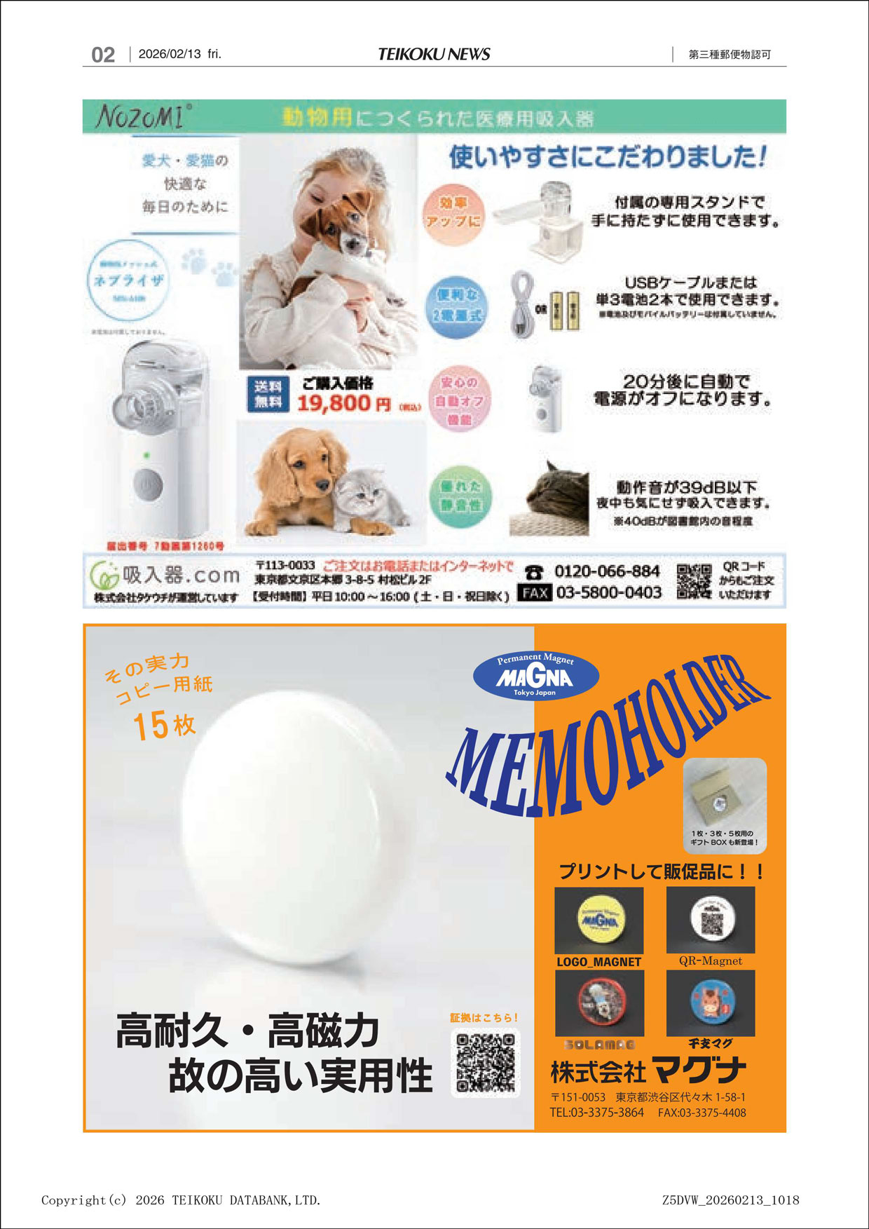 2月13日(金)発行の日刊 帝国ニュース表紙裏面に、弊社企業広告が掲載されました。