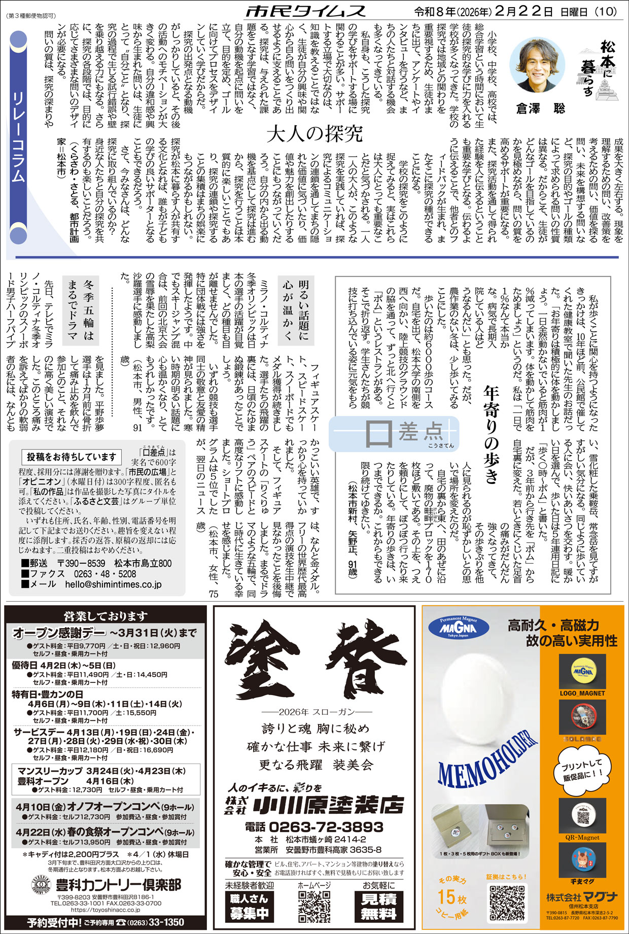 2月22日(日)発行の市民タイムスに弊社企業広告が掲載されました。