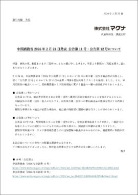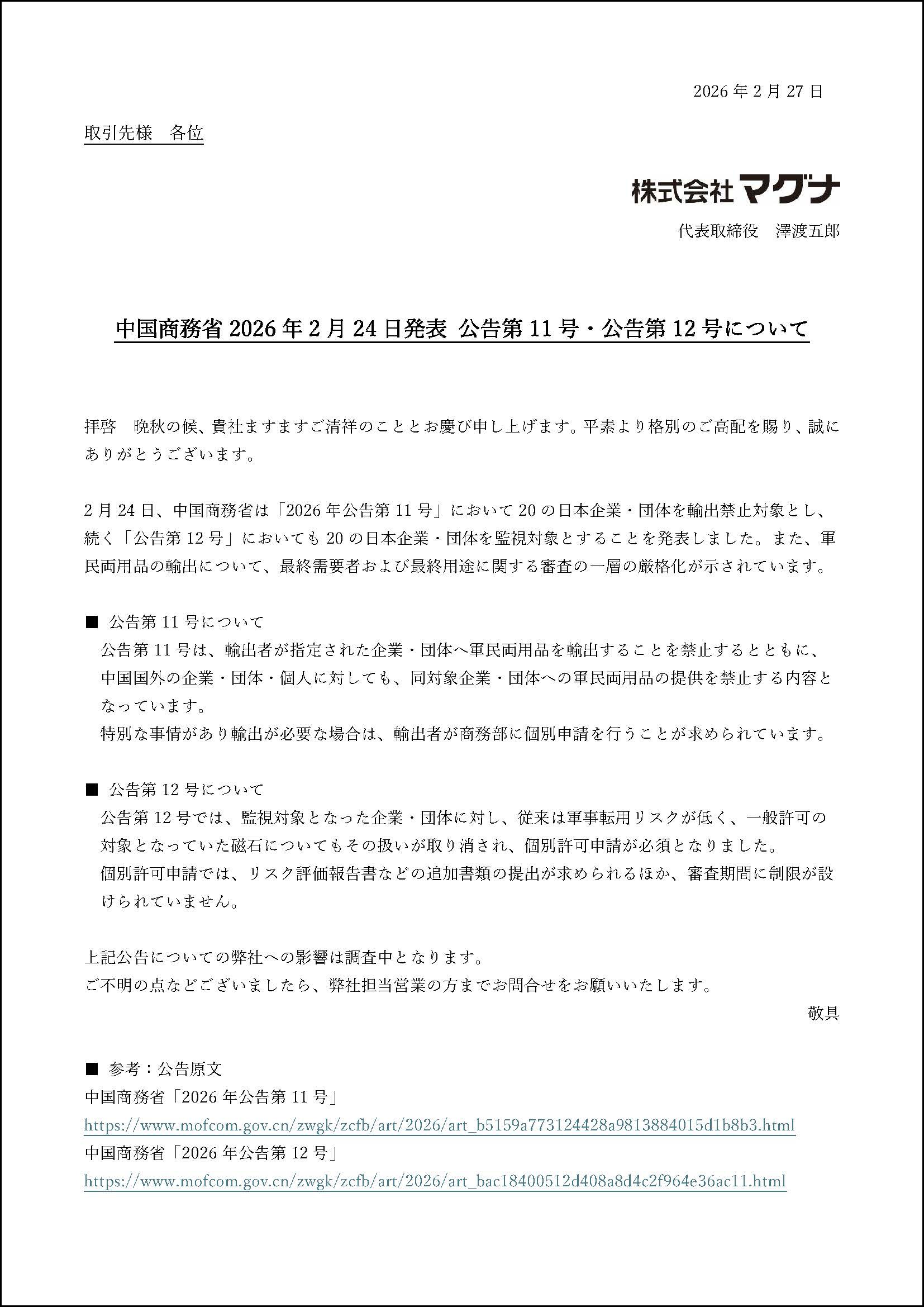 中国商務省2026年2月24日発表 公告第11号・公告第12号について