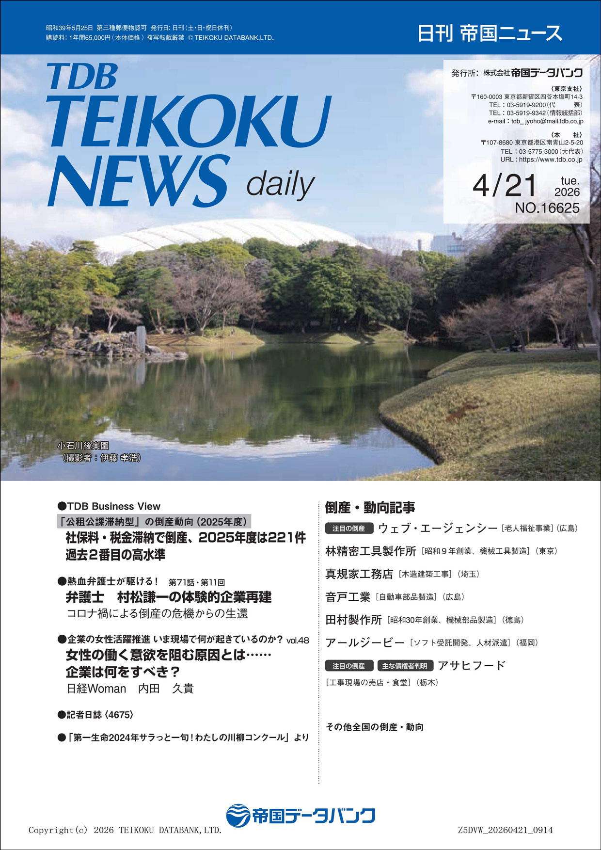 4月21日(火)発行の日刊 帝国ニュース表紙裏面に、弊社企業広告が掲載されました。