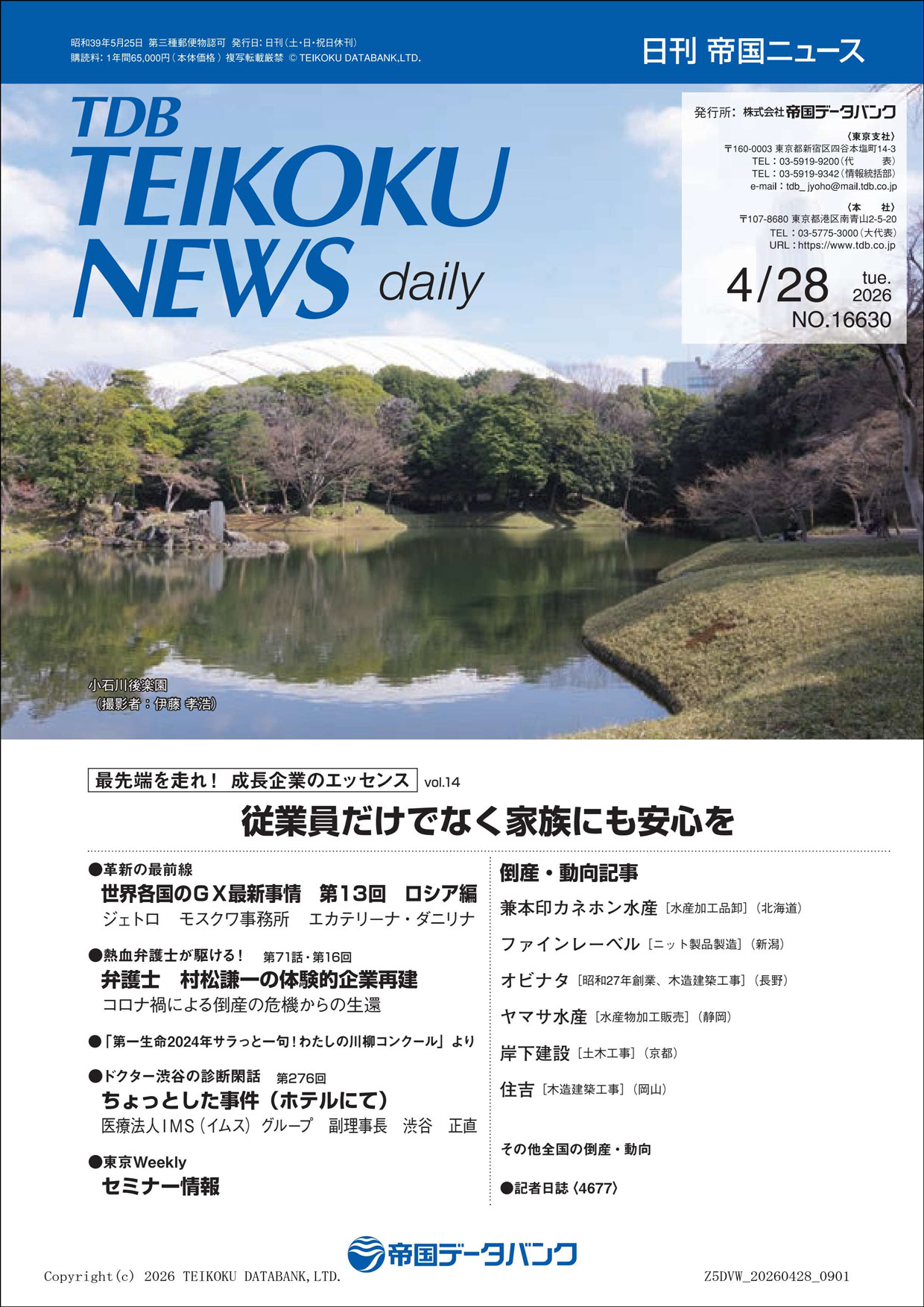 4月28日(火)発行の日刊 帝国ニュース表紙裏面に、弊社企業広告が掲載されました。